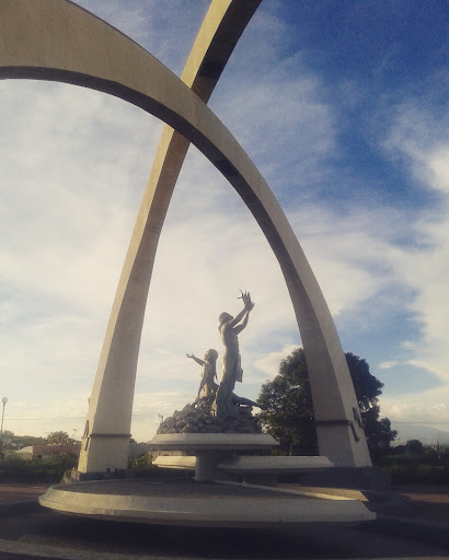 La combiación armónica de los arcos mayor y menor custodian la escultura ubicada al centro del monumento de la cual emana una fuente de agua que representa los manantiales con los que cuenta la ciudad, a este símbolo se le agrega el jardín de cactáceas y alrededor de él 20 luminarias, 28 focos de colores y 16 reflectores con los que actualmente cuenta.
