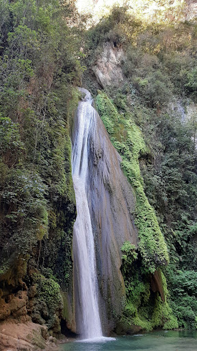 Es un lugar increíble y mágico Para llegar a ella deberás transitar la carretera 120 de Jalpan hacia Pinal de Amoles a unos 30 kilómetros de llegar a Pinal encontrarás una desviación hacia el lado izquierdo de la carretera y deberás transitar un camino de terracería en el cual pueden transitar cualquier carro y después de 8 kilómetros llegarás hasta el lugar donde se estacionan los carros ahí se encuentra la caseta de entrada donde te cobran $40 pesos por ingresar por persona por los niños cobran un poco menos así como también te cobran $30 pesos por el estacionamiento ahí en ese mismo lugar ahí sanitarios y dos o tres fondas donde podrás comer gorditas o tacos ya sea antes o después de que visites la cascada de ese punto tienes que caminar un kilómetro y medio para llegar hasta la cascada este recorrido es a travez de una vereda muy bien trazada la cual te dejará observar vistas espectaculares de la Sierra Gorda y al cabo de algunos minutos estarás caminando a la orilla del río esta caminata es simplemente increíble las vistas y al final llegas a la cascada la cual también es muy bonita con una caída de aproximadamente 35 metros de altura su agua es muy fría en el lugar hay letreros se que nades bajo tu propio riesgo yo te recomendaría hacerlo solo si sabes nadar bien además de que vayas acompañado no dejes basura hay bolsas para colocarla a lo largo del sendero algo que me gusto mucho del sitio es que no vi casi nada de basura Conserva y disfruta la naturaleza