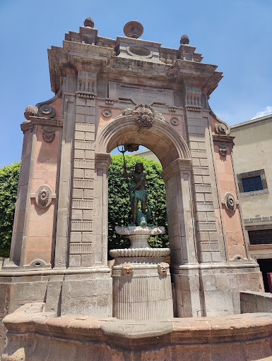 Es una fuente en donde puedes tomar una excelente foto para postal. Una fuente de cantera rosa (típica queretana) rematada en arco cuyo interior posee una estastua del Dios de los mares en lamitología griega Neptuno, orgulloso, sosteniendo su trinche. con dos peces siguiendo a su Dios desde los que nace el chorro de agua que hace funcionar la fuente. Y que sirve también de baño a las palomas que les encanta posarse en este Dios y en éste Jardín de Santa Clara; la fuente se encuentra en una orilla de dicho Jardín, también el templo de Santa Clara, cuya cúpula y torre sirven de excelente fondo a la fotografía típica de la fuente de Neptuno. La fuente original se encontraba en el Mercado de San Antonio, pero cuando se hizo el Jardín de la Corregidora se traslado a la posición actual. Sin embargo la estatua original de Neptuno se encuentra en otro recinto queretano...... Alrrededor de la fuente hay muchas cosas que visitar desde joyas arquitectonicas e historicas (Casa de la marquesa, dos templos, un museo etc.) hasta disfrutar dulces típicos, cafes, chocolates calientes o frios, y artesania muy peculiar. Para llegar es muy fácil, ubicarse de espalda a la puerta del Templo de San Francisco, (El principal) y veras que inicia una calle, (Madero) caminar derecho en sentido opuesto al vehicular , en la segunda cuadra encontraras la...