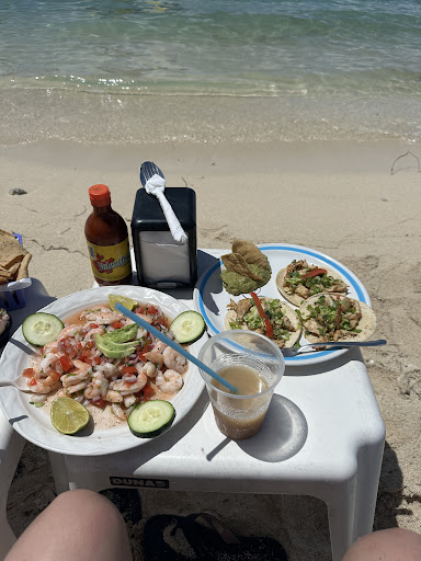 Gaspar was our server today very good server & attentive. I loved the ceviche. The pico & guac was okay, needed more flavor. The chicken tacos were okay too. Nice beach & water activities. They let us use snorkel gear which was nice and a piece for our go pro we forgot. Had a nice time, ty!