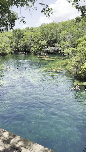 Read moreI took a group of almost 20 people here and we absolutely would recommend it, but I am going to be very candid. This cenote is AMAZING, one of the largest in the area and the water clarity is fabulous. There are multiple jumps and well as plenty of places to hang out in the water. There is also a cool cave in the back. We found the staff to be pleasant and not rude as many other reviews suggested. The staff absolutely takes a firm stance on not having sunscreens and other body products on when you enter the cenote - AS THEY SHOULD. The ecosystem is so delicate and all the chemicals we slather on our bodies greatly harm it. As a general rule all travelers worldwide need to be cognizant of this when swimming in bodies of natural water. This cenote is wonderful but there is a solid half mile walk from the highway into the cenote, its somewhat hilly and its loose sand. There is also a lot of rock stairs and pathways throughout so I would not recommend this cenote for those who have physical limitations or small children. There is a delightful smoothie and snack shack on site and around 1pm tacos and hot dogs were available. The lifeguards are great, they keep a quick watchful eye out. I felt so safe with letting my young son do all the jumps. Now for the sad part, one member of our large group had his body bag robbed of pesos and bank cards that were almost instantly used. It’s quite puzzling how this happened so fast, our entire groups stuff was right next to one of the jump platforms so it must have been someone watching and made a quick grab. I will say his bag was on the edge closest to the walkway and it very well may have been slightly open but it’s still upsetting knowing one of the few people that were there at the same time as us helped themselves to his wallet. I would absolutely bring a large group here again and again but we will make sure we always keep one person on guard where everyone’s belongings are left...