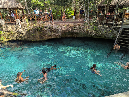 Read moreOur driver recommended this Cenote as being a little off the tourist path and glad he did (shout out to Edgar) We could have spent all day here. The cenote is beautiful with clear fish filled water and beautiful views of the underwater caves. There are two platforms you can leap from. There is also a zip line you can fall from for 10 pesos. The surrounding area really blends with the jungle and has plenty of seating. Definitely rent a swim mask for 50 pesos or bring your own so you can really see everything. . There is a small restaurant and bar that serves local beer we recommend the Tulum beer. The staff is really helpful and friendly with many speaking English. There is also a safari tour we didn't try. Finally a nice little gift shop with...