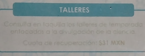 The dome, has a function on Friday (only in English), and other days but I don't remember, the cost for this one is 131 mxn for kids and 157 mxn for adults (I recommend that you...