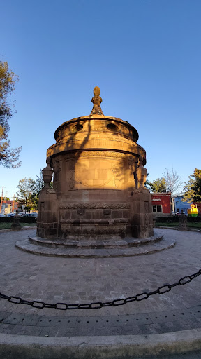 Read moreEs una estructura circular de estilo neoclásico, de cantera, entre cuatro macetones ornamentales con cubierta piramidal de azulejos que rematan en una piña de piedra.