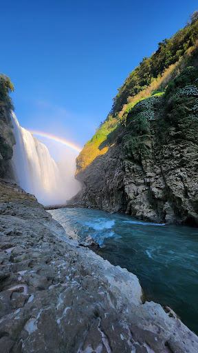 Read moreThere are two entrances / 2 ways to go there. Both of them are difficult. 1st one is the more difficult one. you’ll have to drive on a extremely rocky small road, pay 20 pesos per person, then keep on driving on the rocky small road again. Our car is 4-wheel-drive Mercedes-Benz, but still I felt like my car was about to be shaken apart. And you might get lost because that’s are some Fork in the road where there’s no sign. And if you are lucky enough to get through all these, you’ll arrive at a so called “hotel”. You can park outside and walk through the “hotel” and pay 50 pesos per person plus per car. Then you’ll walk a long way, better wear a good pair of sneakers. Walk, climb, climb up and down the mountains on the wild path…. Better be care and don’t get lost….If you love climbing wild mountains, this may be good for you….we finally get to a place where you can over look the top part of the waterfall from the side…then we gave up. Maybe keep going will get you to a beautiful place where you can see the whole waterfall from side ( I don’t think you can see from the front because of the narrow gorge), but……As for the 2nd entrance/ way, you’ll have to paddle all the way there and back, only seeing the waterfall from far and side for some time. if you are a small group, get lucky to join with others for one boat, otherwise they will charge you for a whole boat ( 1600 pesos per boat, 200 pesos per person if 8 people). Lots of padding and hot sun….but you may make some friends, paddle as a team, splash one another and water fight with other boat. The last but not the least, stop the boat on the way back, climb up a little hill and swim in a cave, which is a unique experience. Overall if you are looking for swimming below or near a waterfall or a relaxing vacation, it’s...