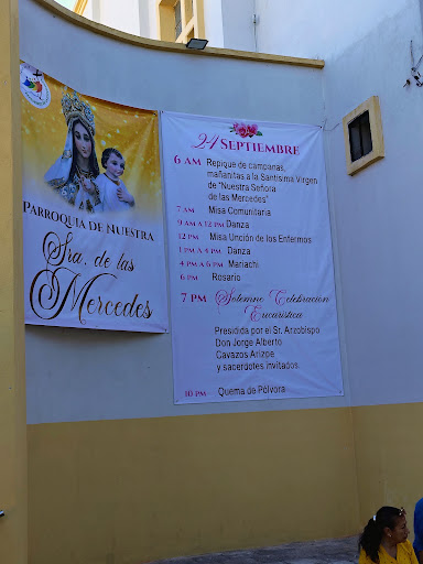 La Fiesta Patronal de Nuestra Señora de las Mercedes en San Luis Potosí es hoy, 24 de septiembre de 2025. Esta celebración se lleva a cabo en la Parroquia de Nuestra Señora de Las Mercedes, ubicada en la colonia Industrial Mexicana, y también en el mercado La Merced. Algunos eventos destacados incluyen ¹: Ceremonias religiosas: Repique de campanas y mañanitas Misas comunitarias a las 6:00 a.m. y 13:00 horas Solemne Concelebración Eucarística a las 7:00 p.m. presidida por el arzobispo Don Jorge Alberto Cavazos Arizpe Actividades culturales: Danza Presentación de mariachi Rosario Función de lucha libre Presentación de un grupo de cumbia Quema de pólvora: Después de la Solemne Concelebración Eucarística y antes de la medianoche