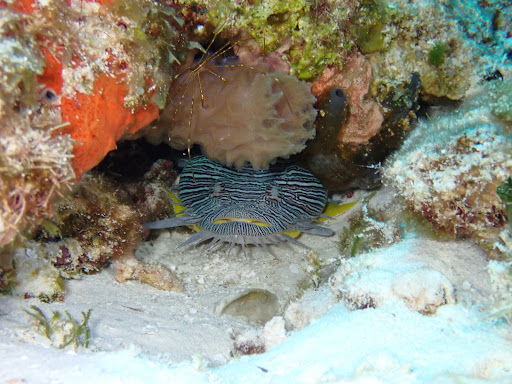 Located across the street from Casa Del Mar, the Shack is next to a cigar store and offers plenty of space to suit up. Well staffed...there were always folks there to help us. Plenty of hangers for your equipment...both inside and outside the building...it was easy to dry wetsuits before packing to go home. They offer lockers to leave you equipment for the week, and this section of Cozumel is super safe. There are folks there well before 8am, and they close at 7:30pm. Shore diving there is easy, and gets you out on a massive plain with lots to see. Their boats carry 4 to 6 divers, and are hard-hulled boats powered by a single outboard motor...no stinky diesel fumes. The boats have an aluminum superstructure with a canvas top and you can stash your shirt up there when diving. Their boats are also fast...we passed a lot of slower boats on the way out to the further reefs. We put on our wetsuits...at least to the waist...prior to departing the 'dock'. The tanks on some boats are all stored on the aft end, so you'll need to let the divemaster setup your rig...you don't want to be lurching around while the boat is moving. They will bring each of you your rig, and you can put it on while sitting and get it ready. You'lll want to put your flppers on BEFORE you put on the BCD. When everyone is all set, the divemaster went in first to check on conditions. With the "OK" we did back roll entries...the Captain would tell each one of us when to go. With the current, be mindful of where everyone is. Most dives were drift dives...even with no current there just aren't mooring sites. There is a rope along the boat...they don't trail a rope behind...so you can hold on, and hand your fins to the Captain...very easy. Likewise we handed our cameras up the same way. Some divers removed their BCDs in the water and the Captain pulled them up, others exited the water on the ladder themselves. Remember...these are small boats so you may be asked to sit OPPOSITE from the ladder to keep the boat level. Snacks for the surface interval were Baked goods! Likewise, they have bottles of water with your NAME on them. First dive was far away, 2nd dive much closer to the shop. But with 4 divers, you can decide where you want to go. Zc SHORE DIVING: No problem at all, unless there is boat in your way. My buddy entered the water just before the boat came in. The Captain saw this, and tied off the boat then nodded to me to proceed. Easy as pie. You can night dive after dark...all very nice. Oh...they dont use rubber valve covers on the tanks so make sure you know where the empties are from the full. I did tank up once only to discover I had a low fill...2000psi...so had to redo everything. From there on, I used their pressure gauge near the counter before walking my tank down to my gear. All in all...Its the 'right size' operation...enough staff, etc but without getting 'lost in the crowd'. Likewise, with such small groups, you can pretty much decide how you want to dive each day. This is on my list of places I...
