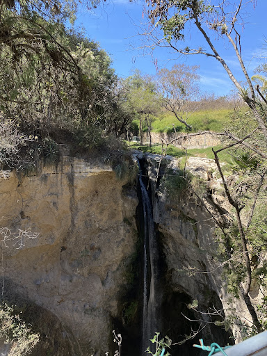 Read moreEstaba buscando un lugar para hacer un picnic, vengo de visita y me recomendaron este lugar es regularmente limpio. Un poco pacífico porque van grupos a tomar y llevan sus bocinas. Pero en general es tranquilo . Hay albercas para que se metan a dar un chapuzón el agua está a temperatura ambiente no es termal el agua está revolcada En relación a la cascada desafortunadamente ya es un lugar contaminado por la humanidad. Huele a aguas negras,No es agua limpia. Pero la caída está espectacular. Pasa un arroyo contaminado. Ya no se conservo ambientalmente. Estacionamiento amplio. Se cobra entrada 40 pesos. Por lo que ofrece creo que apenas pasa. Las albercas están descuidadas. Por el fin que necesitaba cumplió hay mesas para hacer tu picnic. Y mucha sombra....