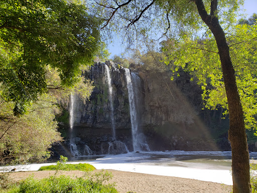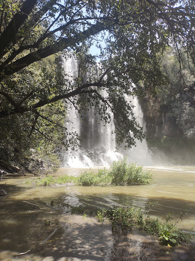 Read moreLa cascada la verdad me sorprendió de forma grata, yo pensé que era mucho más pequeña, aunque me decepcionó mucho la calidad del agua por qué ya son aguas negras y lo descuidado del área que no está privatizada por qué del lado que si está privatizado( me parece que es un hotel) hasta restaurante con mirador y puente colgante tiene frente a la cascada. Fue un poco más divertido por qué como no nos sabíamos el camino(faltan más señalamientos) nos fuimos desde la carretera por la orilla del rio brincando piedras en medio del río y por la nopalera. Ya de regreso vimos el "camino" hacia un estacionamiento y también vimos desde la parte alta de la cascadas unas escalinatas que llegan a la parte baja de la cascada pero ya no fuimos por ahí. Decepcionante la falta de interés de las autoridades para embellecer un bien natural y público aún que quien sabe por cuánto tiempo será de acceso gratuito por qué faltará otro abusado o abusivo que privatice el otro lado...