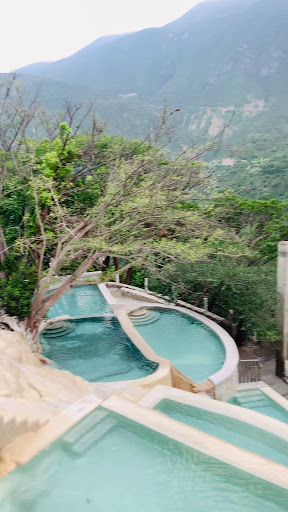 This 36 degree Celsius hot river is a world class experience, we enjoyed this site for three days, on a busy weekend, without a car. The restaurants serve average Mexican food. Bring water shoes.