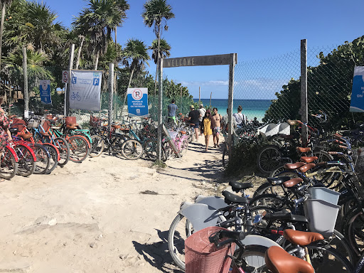 Read moreLast time I was at this beach was in 2020 - just before the pandemic.. we'd been going to Tulum regularly for years and this was our favourite beach, but last time we were there the DJ music & bass from nearby restaurants was almost intolerable, you could feel it through the sand. Arriving was easy - lock your bikes in the shade of the trees near the entrance and relax on the sand all day. Grab snacks at the Chedraui on the way, bring a sun-shelter (like our Suniela cabanas in the photos) and the vibes are awesome. Perfect waves for playing in, great lifeguards, and food options nearby. We're going back soon and I'm really nervous it has become super privatized...