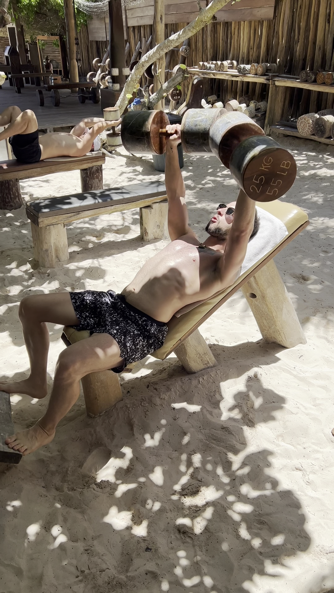 There is just something primal about utilizing the weights and equipment built entirely from tactile lindy materials such as wood, bamboo, and stone (all native to the YucatĂĄn Peninsula by the way). This â coupled with the natural sand surface and saline ocean breeze â increases lifter proprioceptive awareness and provides for enhanced anabolic effect through elevated brain-derived neurotrophic factor production.
