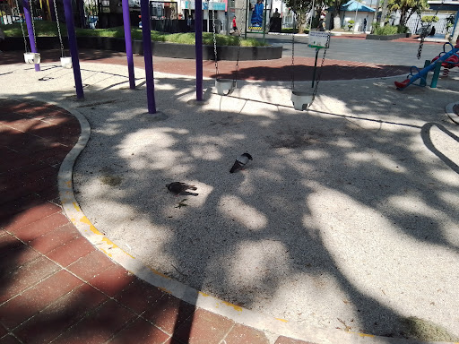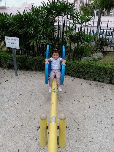 Hay un par de sube y baja para niño y bebes, también un oar de columpios de igual forma para niños y bebés, la vrd los normales (para niños) ya estan bastante descuidados y menos de la mitad sirven pero sigue siendo "bonito" frente a estos hay aparatos para hacer ejercicio también bastante descuidados ya que algunos cuesta demasido moverlos (pero son solo dos o tres los demas funcionan a la perfección pero estan descuidados y sucios).