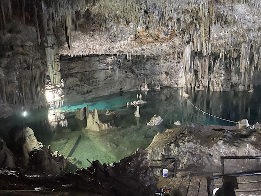 Read moreOne of the most beautiful natural wonders I have ever visited in my life. Pictures don't really do it justice. The ceiling is covered in stalactites of varying sizes. So much that you don't even see rock anymore. The same goes for the walls, completely covered in imposing altars. The water is crystal clear, clean and refreshing. Bring your mask and snorkel, there are lots of underwater stalagmites too. There is a surfboard to explore and relax on. There weren't that many other people visiting. We paid 150 pesos per Person for the entry. There were toilets and a place to change. It doesn't look like much from the outside but once you reach inside you are in a completely different world. I can only...