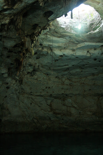 This was pur first cenote and it was a great one to start with. We started early with was a good thing because then you have the place for yourself. The lady that runs the place was very nice and friendly but she also doesn't not have standardized price written somewhere so don't pay more than $60 pesos per person with the life vest included. She has clean restrooms, a place to change clothes and she sells some waters, cokes and snacks. The cenote is a enclosed cenote and it has a hole in the center where the light came in and it make it look spectacular. The depth is between 1 to 6 meters (we...