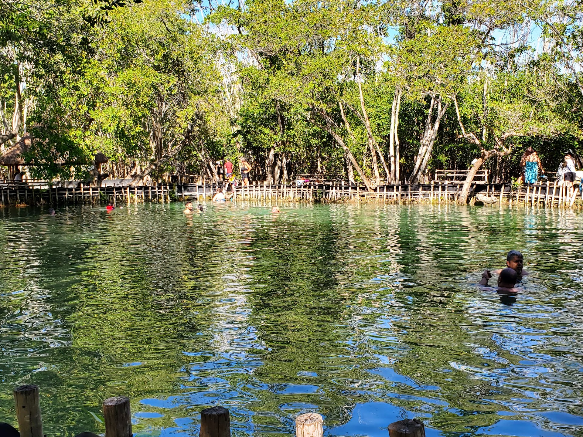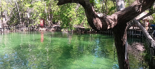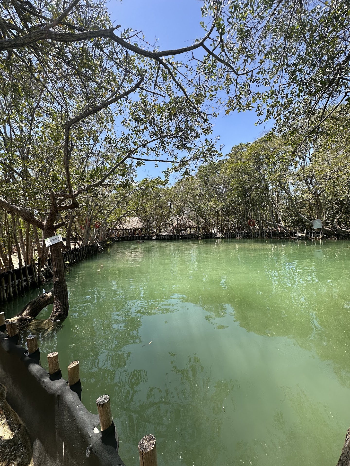 This is an aging hidden place that not a lots people know of. There are 3 cenotes, each with clear water. First (to you left) has a rope to hold on to. Second is very shallow with a pristine water and little fish. The most further is the largest. It has life vest for rent if needed. Warm and soothing. It's like floating in space. Please note that the last boat leave at 4 p.m. if it is windy cenotes might be closed. No food allowed to bring there (rightfully so) or napsacks, but there are lockers you have...