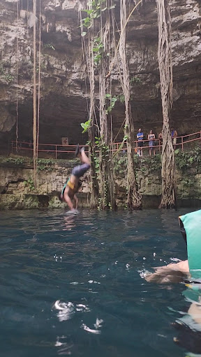 The cenote is 73 steps down through a narrow staircase. Once you get there it is absolutely breath raking. Rope swing is very popular but line moves fast. There is also a diving board. There is plenty of natural light coming in so you can see the clear water below. Highly recommend goggles. It was a bit crowded when went because a tour bus had just arrived. But they left before we did so it got better. The cenote is very large to swim around just watch out for the people swinging off the rope. Life guard on duty all the time which is good. I truly recommend this place for a day trip with kids and family. Keep in mind though that no outside food or beverages are allowed into the cenote or hacienda. And of course, common sense, you wouldn’t want to wear a mask in the water to avoid polluting the area. I didn’t see anyone wearing one, however if you wish to wear one I don’t know what there policy would be since they’re are very careful about maintaining the cenote clean and free of...