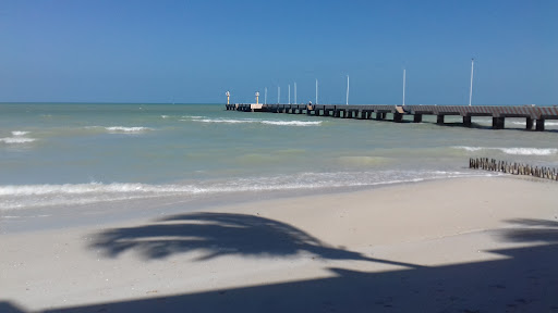 Basically off the main road you take a side road and arrive in 5 min. Park anywhere. Beach area small and surrounded by houses. Also away from tourist aras and people etc. Great to bring own umbrella and foods. Water warm, calm and great for family. Safe area. Also great to hang out here and then go to one off the many restaurants...
