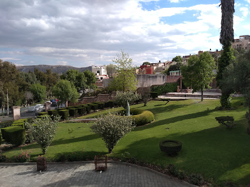 nos dispusimos a ir a un museo llamado Museo Francisco Goitia caminamos desde el hotel Quinta Real y pasamos por el PARQUE GENERAL ENRIQUE ESTRADA, que en el costado Oriente cuenta con el ACUEDUCTO, el que adorna la entrada del Hotel Quinta Real Zacatecas, Sa de Cv que durante muchos años sirvió para llevar el agua a la que entonces era la parte sur de la ciudad y que desembocaba en la plazuela de Villareal, para vencer los desniveles del suelo fue necesario construir la arquería que conducía el agua hasta el sitio donde hoy se encuentra el monumento ecuestre del General González Ortega, continuaba el acueducto por la azoteas de las fincas hasta llegar a la pila.