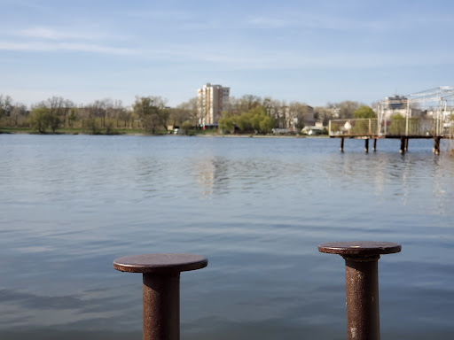 Read moreЕсли хочется к водоему, то вам сюда. Свежий воздух, камыши, относительно тихо и безлюдно. Есть скамейки присесть думы подумать, детская площадка с качелями старше возраста их родителей) мини сосновая роща на склоне. Рядом не увидели магазинчик, так что вода и закуски с собой. Причал небольшой, летом наверное тут движ. К вечеру собираются компании, кто как на пикник, кто просто книгу почитать. Кстати туалет не видели, так что все дела делать до... за отсутствием других розваг, то место...
