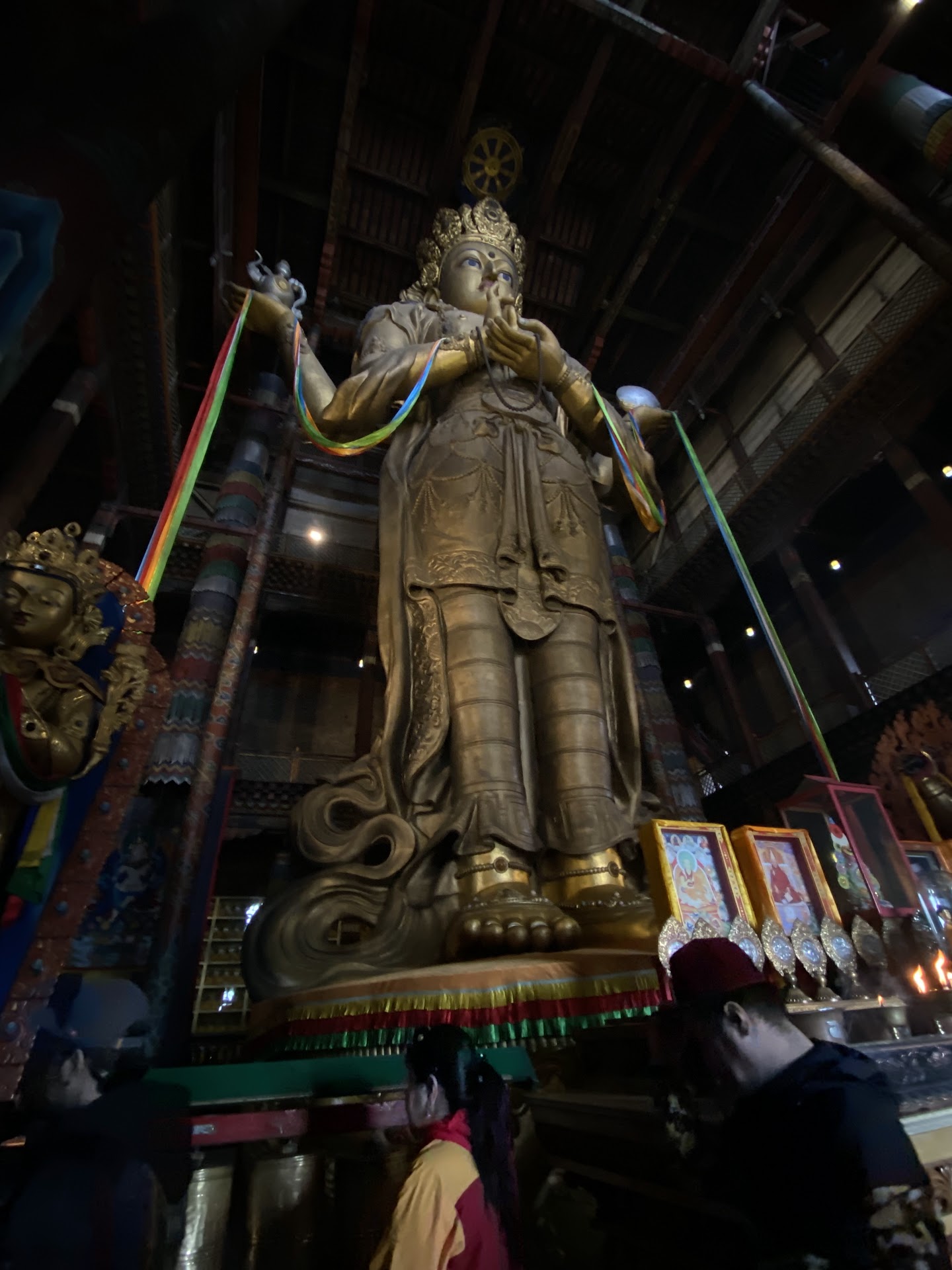 The Gandantegchinlen Monastery (Mongolian: Гандантэгчинлэн хийд, Gandantegchinlen khiid, short name: Gandan Mongolian: Гандан) is a Mongolian Buddhist monastery in the Mongolian capital of Ulaanbaatar that has been restored and revitalized since 1990. The Tibetan name translates to the "Great Place of Complete Joy". It currently has over 150 monks in residence. It features a 26.5-meter-high statue of Avalokiteśvara. It came under state protection in 1994. The Gandantegchinlen Monastery (Mongolian: Гандантэгчинлэн хийд, Gandantegchinlen khiid, short name: Gandan Mongolian: Гандан) is a Mongolian Buddhist monastery in the Mongolian capital of Ulaanbaatar that has been restored and revitalized since 1990. The Tibetan name translates to the "Great Place of Complete Joy". It currently has over 150 monks in residence. It features a 26.5-meter-high statue of Avalokiteśvara. It came under state protection in 1994. Gandantegchinlen Khiid monastery, having escaped this mass destruction, was closed in 1938, but then reopened in 1944 and was allowed to continue as the only functioning Buddhist monastery, under a skeleton staff, as a token homage to traditional Mongolian culture and religion. With the end of Marxism in Mongolia in 1990, restrictions on worship...