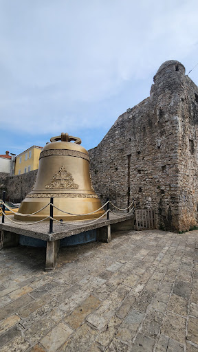 Strange props. In front of the northwest corner of the city walls, the visitor to Budva comes across a large anchor and enormous bell. There is no sign explaining these two objects, but fortunately it can be found on the internet. Montenegro has attracted quite a few film crews over the years, and one of those film crews used this bell and anchor as props for filming in Budva's Old Town. As a sign of gratitude for the warm welcome they received from the city, these two remarkable props were donated to the city after the filming...