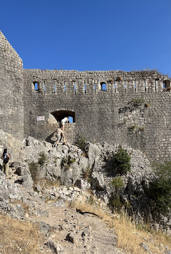 Trail is pleasant, although it’s all switchbacks for the most part, there is consistently a nice view into town and of the water. Once you make it past the cold drinks stand at the top of the switchbacks, it’s another 5-8 min to a rock with an F on it. Follow the arrow (right) and you’ll make it to the window to climb into the fortress. It wasn’t hard for us to climb in, there is a chair to help you get up, but there were some people who refused to do it. We also saw a couple with their 5-7 year old climb in with no problem.