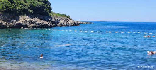 В цілому пляж непоганий. Мати аквашузи просто необхідно, щоб не скалічити ноги об каміння. Є невелика частина пляжу "без нічого" безкоштовна і інша платна, облаштована шезлонгами. Вартість 2 шезлонгів з парасолькою у липні '22 була 12 євро на день. Якщо будете відвідувати цей пляж майте на увазі, що на "платній" частині пляжу свої напої ви пити не зможете, можна тільки ті, що ви замовите в ресторані на пляжі. З розваг на пляжі є 2 каяки і 1 катамаран які можна взяти в оренду погодинно, за 7 і 10 євро відповідно. Що тут буде ідеальним так це море, чисте,...