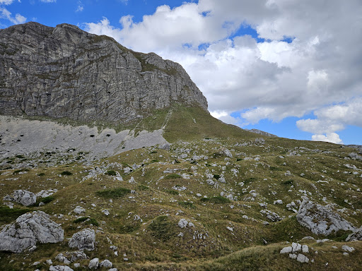 I'd classify this as a moderate-to-hard trail. We took our car to the trail start, which is this point on the map and where the parking was (5e). 1st 20 mins were abruptly a hard start, then you walk straight through the rocky plains for 60 mins, very easy and lovely views. Then you actually go down a bit before starting the toughest part of the trail, which is about 1hr of uphill into the mountain and towards the peak. Last 10 mins before the peak have some cables (everything seemed in excellent conditions) and is a bit technical, so I'd recommend avoiding crowds (going up early, we began at 9 and that worked well) and taking it one step at a time in this section. Took us about 3 hours to reach the top with 3 short water stops. Incredible views of Durmitor, saw some mountain goats as well on...