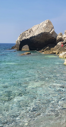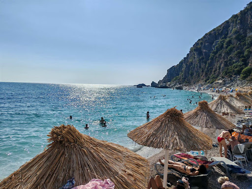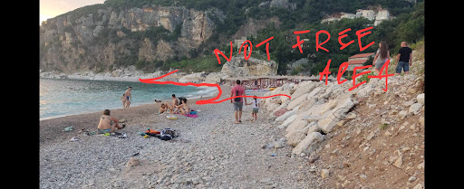 Read moreThe water was turqiose and very beatiful. The beach has excellent parking also. But there was a red flag up, though this was not in the place where people could see actually. There were 2 bars, one was told to be closed by the owners (and they just sat there, watching, keeping the toilets closed also). The other had very loud music and very dirty and smelly toilets with windows open for outsiders to see inside and no toilet paper. Lots of rocks inside the water so pretty dangerous to swim, near the...