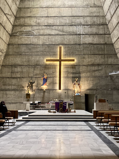 The church is worth a visit if you are a fan of Brutalist architecture. It may or may not be open to look inside and it is a 20 - 25 minute walk (each way) along a busy, noisy, non-scenic road, from the Karver Bookstore. I think it was worth the walk but be aware.