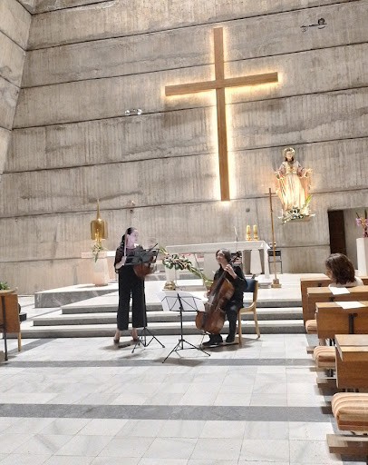 Read moreНаконец-то мы посетили этот костел. Издали нынешняя церковь святого Сердца Иисуса напоминает парусное судно с единственной мачтой. Это интересное архитектурное сооружение, построено во второй половине XX века. Ранее на этом месте также существовала католическая церковь, но она была разрушена в годы Второй Мировой войны. Взамен нее был построена новая, ставшая произведением уже современной архитектуры. Однако в подобном стиле существует не так много религиозных построек, что делает этот храм уникальным.