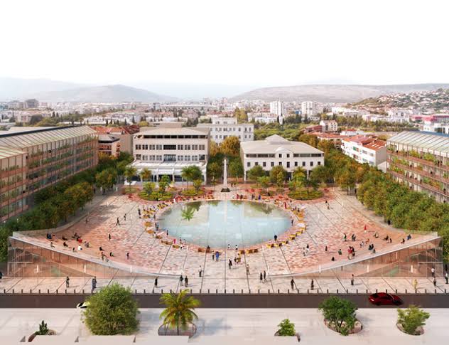 Trg Republike, 2006 yılına kadar Trg Ivana Milutinovića ( Ivan Milutinović Meydanı ) olarak biliniyordu - ünlü bir Karadağlı komünist politikacı, askeri general ve ulusal kahraman. 2006 yılında, Karadağ'ın bağımsızlık yılı olan meydan büyük bir yeniden yapılanmaya uğradı. Genişletildi, asfaltlandı, büyük bir merkezi çeşme inşa edildi ve alan araçsız bir bölgeye dönüştürüldü. Meydan, sütunlar, palmiyeler ve su kanallarıyla süslendi. Tüm projenin maliyeti yaklaşık 2,5 milyon Euro'dur.