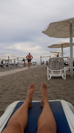 Read moreThe beach is quite clean. Two beds and a beach umbrella are 10€, the VIP place is 20€. It’s not too busy. Unfortunately the toilet could be cleaner. The restaurant by the beach is okay, we ate fish which comes with fries. The ice coffee is pretty good. Free...