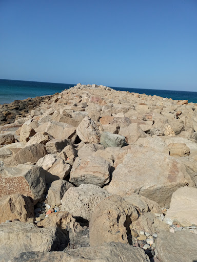Je me suis dirigé vers le ponton de la plage ghandouri car je voulais voir la vue panoramique depuis le ponton. J'ai été déçue car le ponton n'est pas plat. C'est un amont de roches. Seuls les pêcheurs empruntent ce chemin. Je les ai vu faire des aller retours. J'avoue j'avais peur de me fouler la cheville en marchant dessus. Le ponton marque le début de la plage ghandouri qui était vide ce jour là. Elle n'est pas très propre mais ça doit être sympa juste de marcher le long...