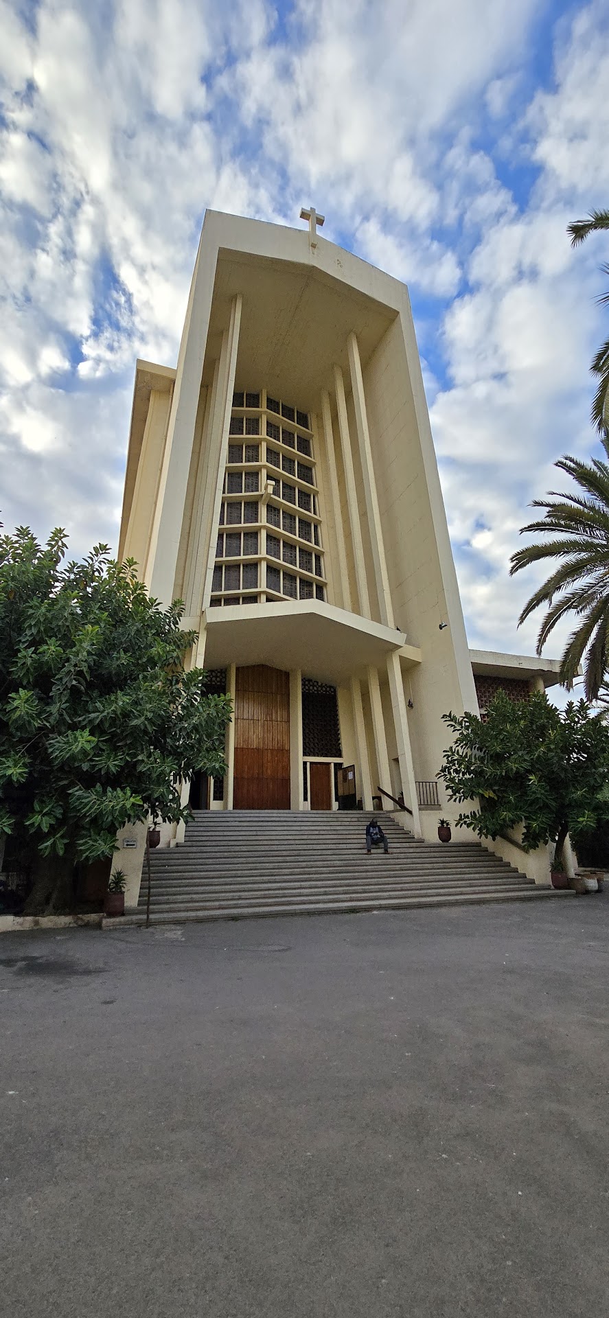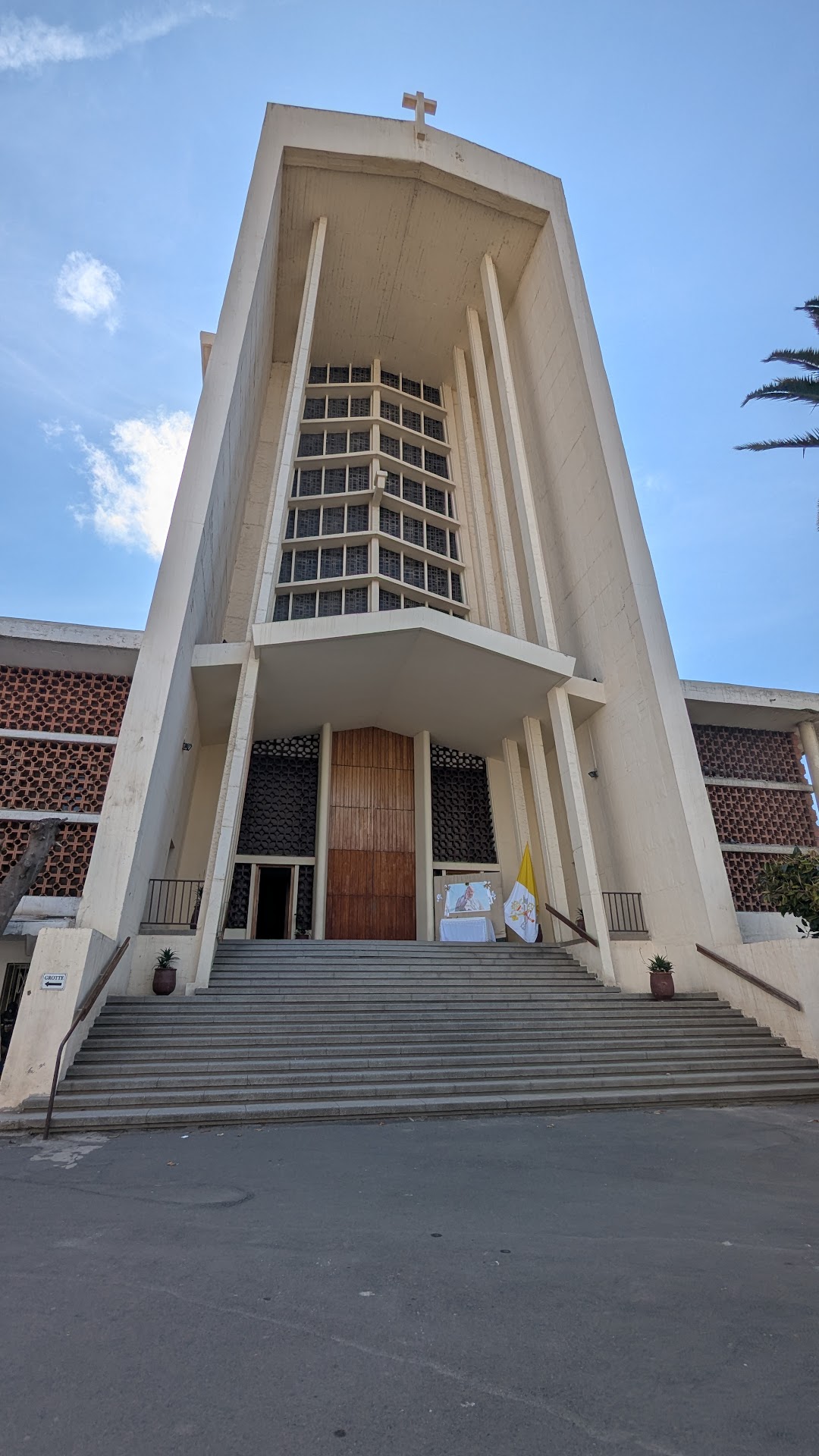 Read moreIt's a beautiful modern sanctuary in the midst of a busy urban environment . I love the stark simplicity of the concrete interior and how the stain glass reveals itself as one proceeds through the aisle. It feels Byzantine and Gothic and Modern. If you like modern art and architecture this and Villa Zevaco (restaurant Chez Paul) are worth visiting in Casa. If you visit outside of Mass you might have the entire place...
