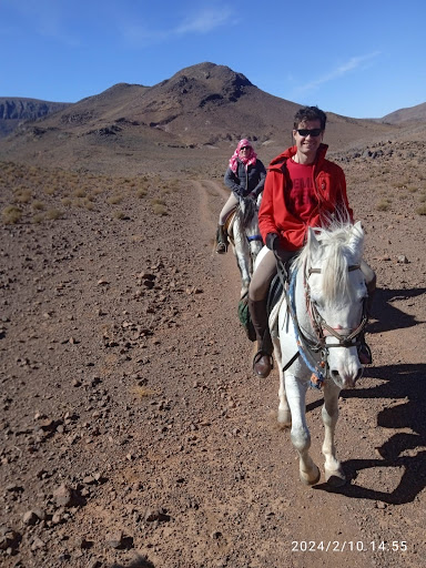 Read moreJust back from 2 days one night trip with Nomad Horse Riding. We had a fabulous time in incredible scenery on awesome horses. I’ve ridden all my life and had a fast but easy to handle horse, my husband has ridden 10 times but had a fantastic horse who really looked after him and he was cantering along behind fully in control and choosing when he would prefer to trot, if we cantered ahead. The horses are fit and well cared for. We rode for about 8hrs a day and stayed over night in the home of a Berber family at an impressive oasis village. Their house was in very good condition, very clean, especially the toilet which is a French style launching pad, as with a lot of Morocco, and had running water. They provided plenty of hot water for us to shower in. They were most hospitable! They made sure we were warm, despite it being winter and fed us incredibly well. Our bags were brought to us there and we carried what we needed for the day in saddle bags. We lunched each day at a different oasis and the horses had a good lunch, drink and rest at this time.