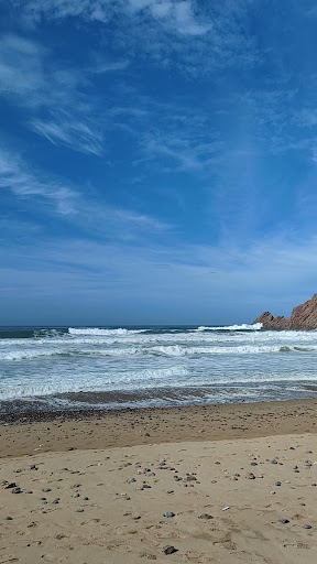 It's a Black flag beach, Beautiful to look at but not worth the detour. Very rough waves and rocky, we didn't see any surfers which Could just be the time of the year now but I wouldn't bother coming back. Not nice for swimming, maybe surfing if you are willing to ignore the black flag, no life guards on duty and only a small restaurant with a limited menu. Unfortunately I can't say I'd recommend it, there are much nicer beaches...