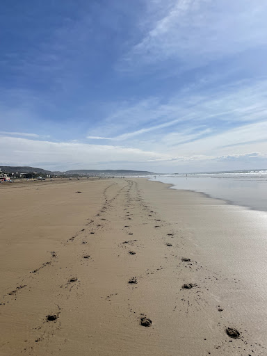 This beach will always have a special place in my heart, I absolutely loved it! The water is clear with a perfect temperature, and there are just enough waves for surfing. The whole town nearby is super cute too. Just so you know, there are quite a lot of people walking around selling things, and you’ll also see camels, horses, and ponies on the beach. One thing to watch out for: we did spot some big jellyfish, so be careful when swimming. Parking was free, which was a...