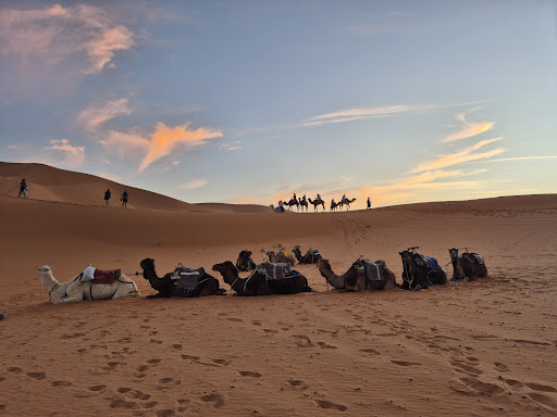 Merzouga ou "Mer des Sables" est une ville désertique située dans le sud-est du Royaume du Maroc, caractérisée par sa charmante nature montagneuse, et des dunes de sable chaudes en été comme en hiver. Elle est également destinée aux patients souffrant de rhumatismes, colonne vertébrale , les maladies de la peau et les raideurs musculaires, pour le traitement par enfouissement dans le sable et les dattes utiles produites par la ville, en plus du lait de chamelle riche en nutriments qui complètent le voyage de guérison dans le sable. mer de sable La ville de Merzouga, surnommée par les marocains et les touristes comme « la mer de sable » est située au sud-est du Royaume du Maroc, et était autrefois un passage terrestre pour les caravanes commerciales entre l'Europe et l'Afrique subsaharienne - la La zone chaude est devenue merzouga depuis le milieu des années cinquante du siècle dernier, un hôpital bédouin ouvert populaire, où les patients atteints de rhumatismes et de maladies de la peau le visitent pour un traitement par enfouissement dans le sable selon un programme hospitalier patrimonial dont les secrets ont été hérités par les habitants de la région depuis l'Antiquité, repose sur l'enfouissement complet du patient dans la couche intermédiaire du sable de surface de la terre - à l'exception de la tête - pendant une période allant de 6 à 12 heures, selon le type et degré de la maladie, puis le patient est retiré du sable et le «paresseux» prend en charge le processus de frottement du corps du patient avec les restes de sable collés sur son corps d'une certaine manière pour enlever toute la couche superficielle de la peau, lubrifier le muscles et articulations et activer le processus de circulation du fluide visqueux dans les articulations.Après cela, on offre au patient une tasse de lait de chamelle et un certain nombre de dattes, à manger dans le but de remplacer les fluides et les nutriments que le corps a perdus pendant la processus d'enterrement, et se répète Ce processus, selon le cas, de deux à six jours, après quoi le patient se rétablit complètement des rhumatismes ou des maladies de la peau. Médecine, dattes et chameaux La ville est visitée chaque année par environ 100 000 patients pour un traitement dans des bains de sable et environ 200 000 touristes par an, amateurs de safari et de camping dans le désert.Au cours des années cinquante et soixante du siècle dernier, dans le but de stimuler le tourisme, la culture de la palme et le commerce des dattes vers l'intérieur du Maroc et avec les pays africains, en particulier la Mauritanie, et l'élevage et le commerce de chameaux, où la région est célèbre pour la disponibilité des meilleurs types de chameaux en Afrique, sont également organisés des festivals annuels de chameaux qui incluent une grande course de chameaux . le masqué Les habitants du Maroc appellent les habitants de Merzouga le surnom de « les masqués » ou les propriétaires du voile bleu. Des journées extrêmement chaudes. Médecine bédouine La région est également réputée pour ses plantes sauvages médicinales que les habitants de la région sont capables d'utiliser en médecine populaire après les avoir séchées et mélangées avec d'autres plantes dans certaines proportions et préparées pour la consommation qui sont vendues en pharmacie. artisanat Quant à l'artisanat populaire, Merzouga se distingue par la fabrication de "tapis" ou tapis bédouins tissés à partir de laine et aux couleurs distinctives, en plus d'autres textiles en laine, qui sont un costume bédouin populaire comme le désert selham et fawiya, qui sont des textiles qui jouissent d'une bonne réputation au Maroc et en Mauritanie, en plus de la semelle traditionnelle.« Al-Balgha » en cuir naturel, et tous sont des produits que les commerçants marocains et mauritaniens acceptent, et même les touristes qui...