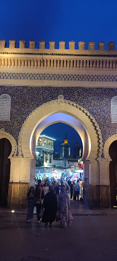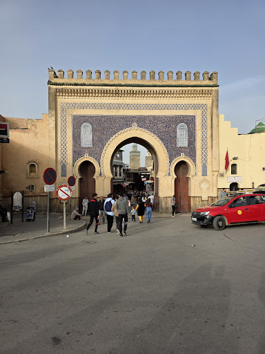 Bab Boujloud (also spelled Bab Boujeloud or Bab Boujloud) is a historic and iconic city gate in Fez (Fès), Morocco, serving as the main entrance to Fes el-Bali, the city’s ancient medina and a UNESCO World Heritage site. Here’s a detailed overview: Historical Background Construction: Built in 1913 during the French colonial administration, it replaced a simpler 12th-century gate. The original gate, designed with defensive angles to hinder invaders, remains visible but closed today. Name Origi: The name "Boujloud" is derived from a corruption of Abu al-Junud ("Father of the Troops"), referencing a nearby military Architectural Features Design: A triple-arched gate in Moorish-Mauresque style, featuring intricate zellij tilework(geometric mosaics). Exteriorm: Blue tiles, symbolizing Fez’s famed cobalt-blue pottery. Interior: Green tiles, representing Islam. Arches: Three horseshoe arches, a hallmark of Islamic architecture, with the central arch accommodating pedestrians and vehicles. Cultural and Practical Significance Gateway to the Medina: Marks the transition into Fes el-Bali’s labyrinthine streets, souks, and historic landmarks like the Bou Inania Madrasa and Al Quaraouiyine Mosque. Daily Life Hub: Surrounding cafes and restaurants (e.g., rooftop terraces) offer views of bustling activity—donkeys, vendors, and tourists mingling in the car-free zone.