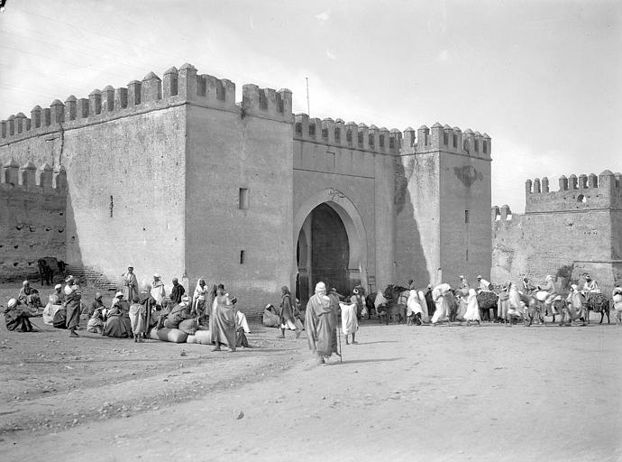 Le nom Bab (al-)Ftouh signifie littéralement « Porte de l'ouverture », mais historiquement, ce nom (également utilisé pour Bab al-Futuh au Caire) a été interprété comme « Porte de la conquête » ou « Porte de la victoire ».1 ] Cependant, on pense que le nom de cette porte proviendrait plus directement du nom d'un émir Zenata qui s'appelait lui-même al-Fetouh Ibn Dounas et qui domina la première ville de Madinat Fas (aujourd'hui le quartier andalou) de 1059 à 1061, à l'époque où Fès était encore divisée en deux villes distinctes.[2] On dit qu'il a construit la première porte dans cette zone à porter son nom.[3 : 42 Cette porte a remplacé une ancienne porte Idrisid appelée Bab al-Qibla (du nom du fait que la porte se trouvait dans la direction de prière, la qibla, par rapport au centre-ville).3 Al-Fetouh était en rivalité avec son frère 'Ajissa, qui contrôlait l'autre ville, al-'Aliya, sur la rive opposée du fleuve, et qui à son tour donna son nom à la porte connue sous le nom de Bab Guissa.3 Peu de temps après, en 1069, les villes jumelles furent conquises par les Almoravides et réunies en une seule ville avec un seul ensemble de murs. Celles-ci ont été détruites en 1145 par le conquérant almohade Abd al-Mu'min, puis reconstruites par l'un de ses successeurs, Muhammad...