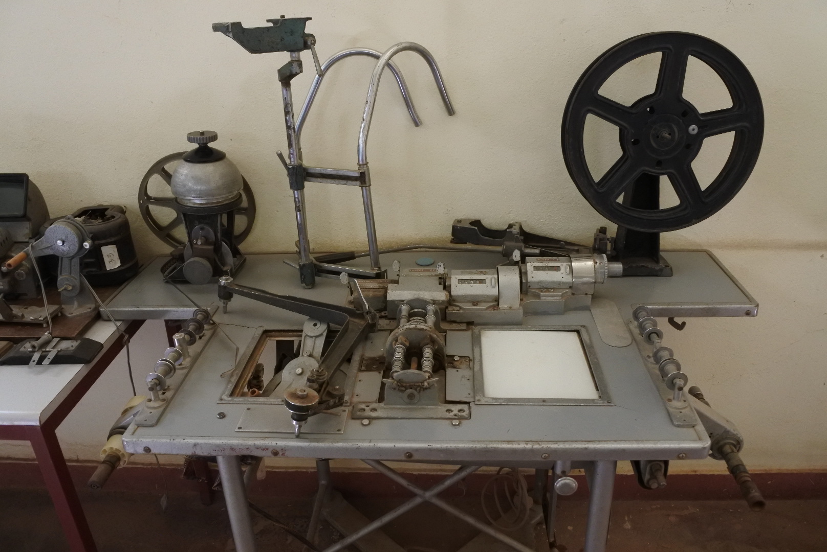 There is a room filled with old discarded film equipment, most in poor to terrible condition. It is all quite poorly labelled and explained. Most things are broken from people messing about with them. Old torn film hanging out from here and there. There’s even an old camera battery pack, complete with leaking cells and all to see. Exciting stuff.