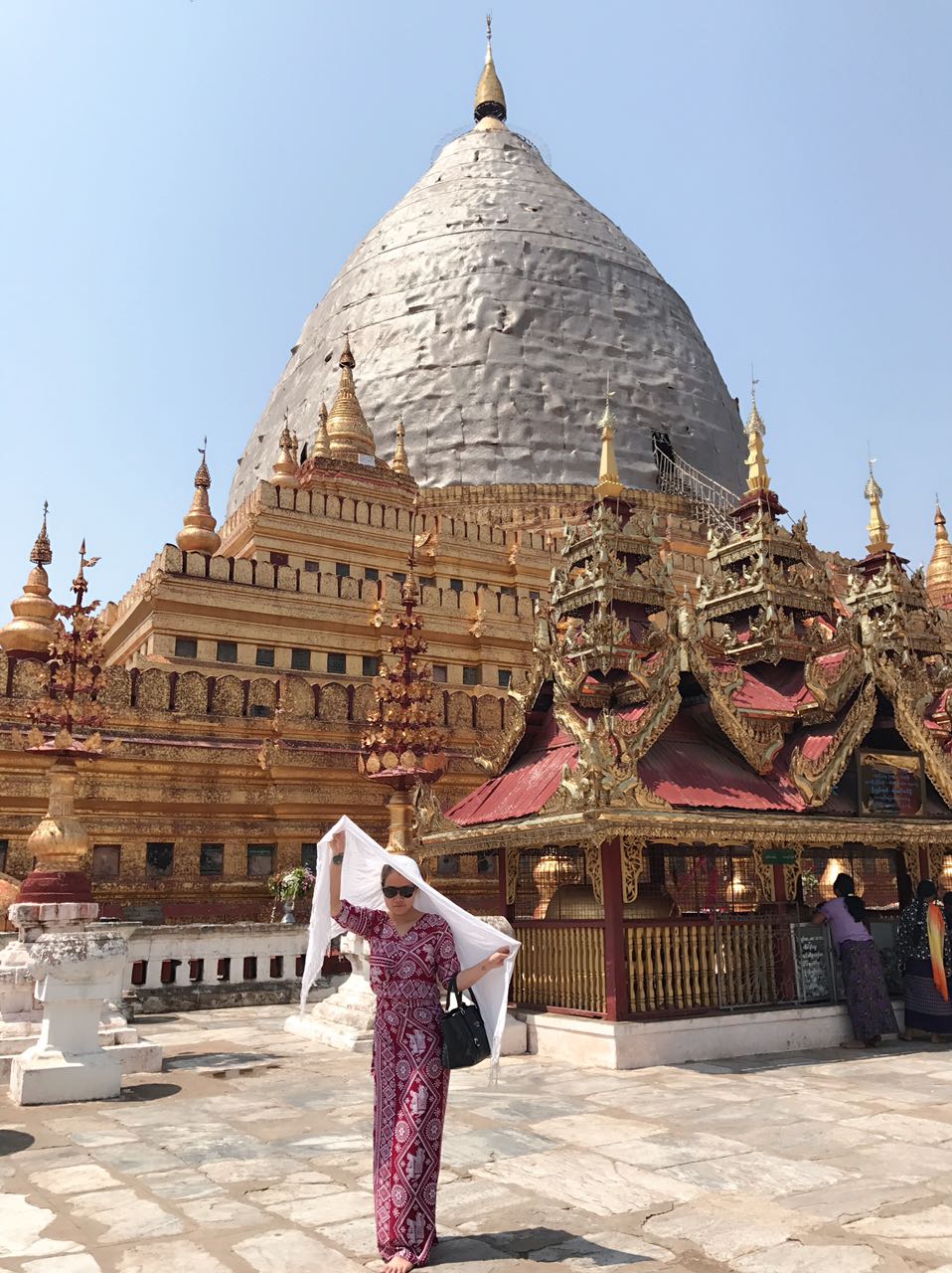 Glimmering in the sun, the huge gold-plated Shwezigon pagoda is one of the oldest and most impressive monuments of Bagan.