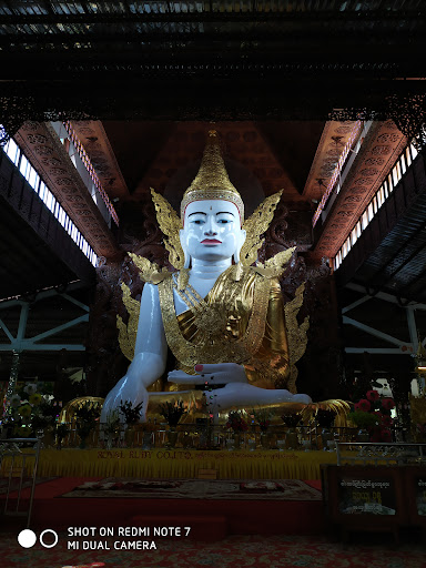Buddha Images which devout Myanmar Buddhists built in the early days of British rule is the commonly known Nga Htat Kyi Buddha Image. About a mile east of Shwwedagon Pagoda is an enormous Buddha image in a sitting position housed in an iron Tazaung(pavilion) build on the summit of a wooded hillock in Bahan Township of Yangon. Third largest sitting Buddha Image in Yangon it bearsthe Pali name "Maha Thetkya Atula Man Aung " meaning "Great Thetkya Peerless Victor of all enemies". Thetkya was the name of the race to which Gotama Buddha belonge. Built of brick and cement concrete, the image takes the style of bhumiphasa siparsa mudra (earth touching posture) indication that the Buddha was calling upon Earth to stand witness to all his wholesome deeds. A big stone slab bearing 80 lines of inscriptions on its front and back and a huge bell of 13 feet and 8 inches high, weighing 5000 viss bearing 63 lines of inscriptions on its body are found in the pavilion. These inscriptions tell us the history of the Image and biography of the donors. Where the image now is situated was previously called "Ashey Tawya" (the great Eastern Forest Recules). A place where Buddhist monks of forest dweller type resided to pursue the path of a solitary holy life of forest monks meditation and practicing the teachings...