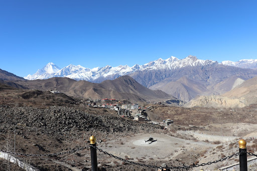 "The view of Dhaulagiri and Nilgiri mountains from Muktinath is awe-inspiring."