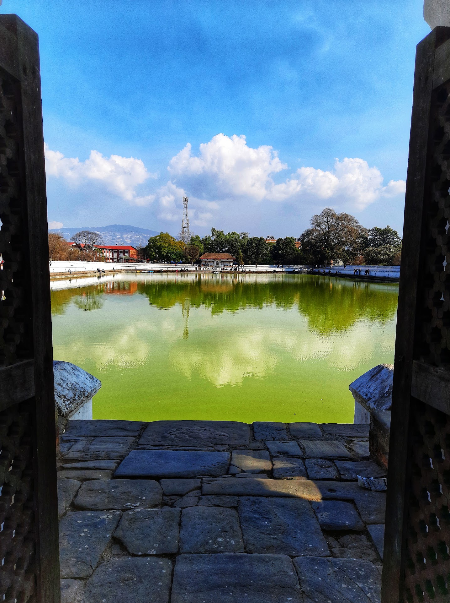 The first thing that struck me was the tranquil ambiance of the place. Surrounded by traditional Newari houses and lush greenery, Siddha Pokhari offers a peaceful retreat from the bustling city life. The pond itself is quite expansive, and its still waters reflect the sky and the surrounding structures beautifully, creating a picturesque scene.