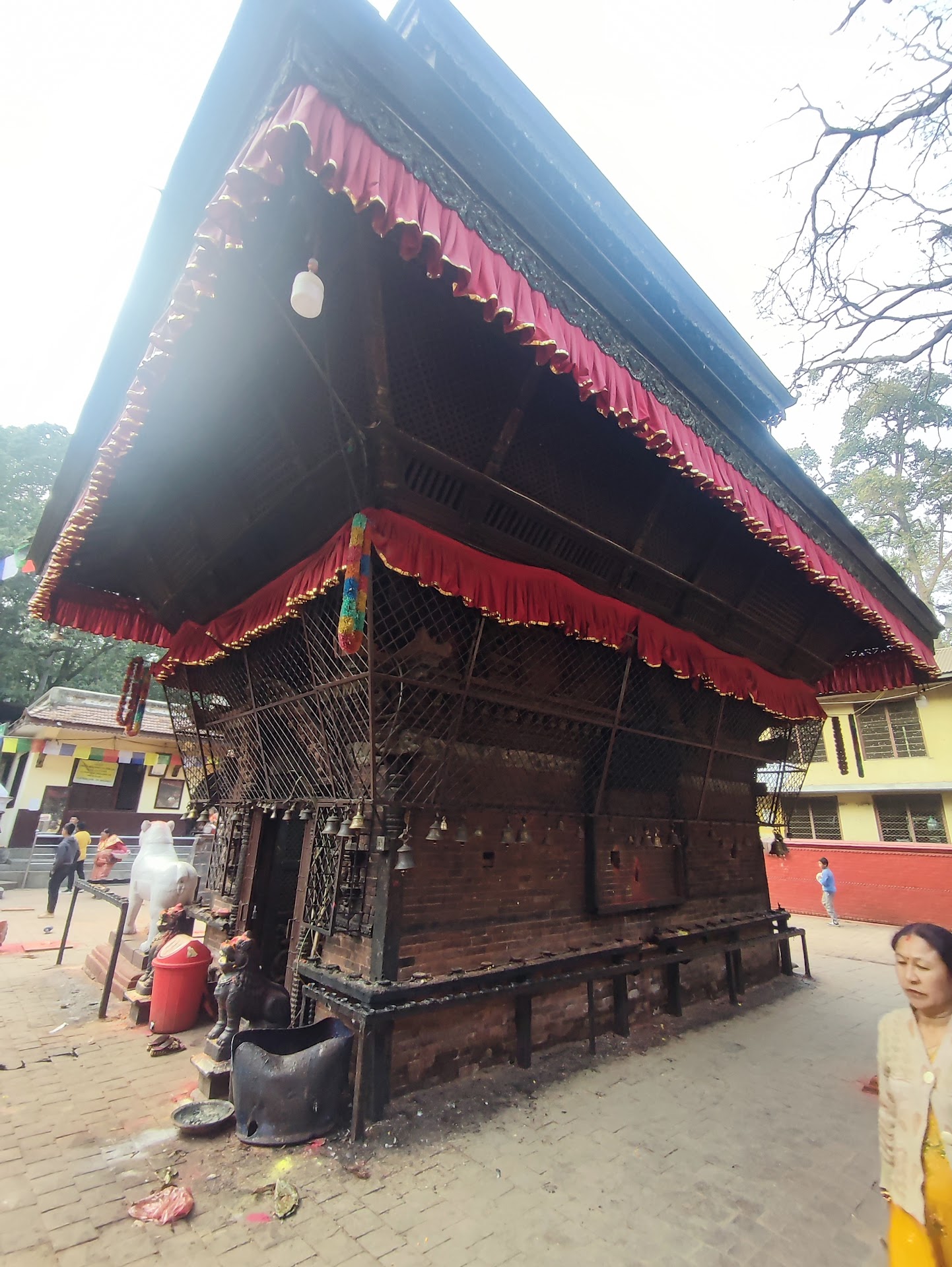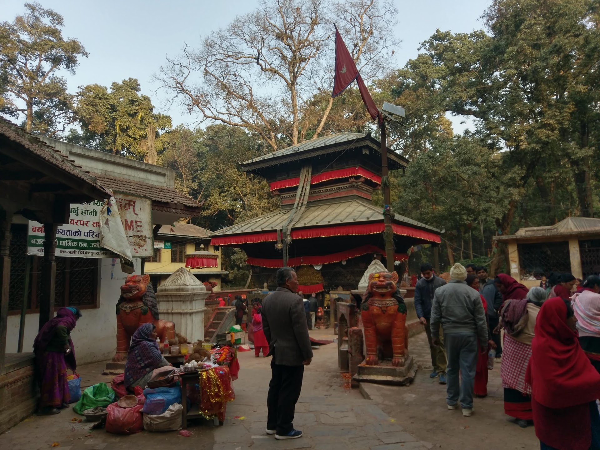(Information from the internet) Myth: According to the legends, the temple was established in the month of Chaitra in 784 BS by Shrinewas Malla and it is said that the place, where the temple stands today, was a pond in the middle of the forest back then. It is believed that the goddess Bajrabarahi incarnated from the pond and hence, a temple was established in its place later. The temple not only has the image of the goddess but also the statue of Nawadevta on its left and right sides, along with the statue of Lord Shiva. Also, the temple does not have a gajur (pinnacle), which is quite uncommon for the temples in Nepal, especially Kathmandu. It is said that the gajur was made in Patan and the night before it was to be put, the priest of the temple saw a nightmare where he dreamt that anyone who would try to put the gajur in the temple would die of heat injury. Hence, the idea of putting up a pinnacle on the top of the temple was dropped and the temple remained without it.