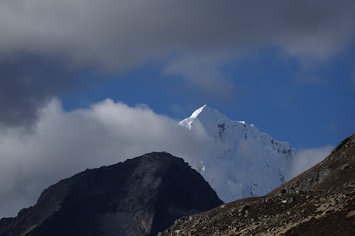 First or last pass of the three-passes tour. (Rather go last from Gokyo, because from Thame good acclimatization is difficult and the path becomes very long and very hard). From Gokyo pleasant climb. In the upper part often some snow; around the pass rocky with some scree. Like everywhere here: Attention, we are on the roof of the world. The weather is occasionally unpredictable, and then it quickly becomes rough here. (No pics of the ascend because of...