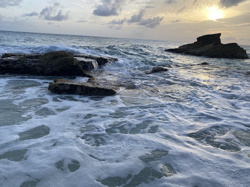 A very beautiful beach with how the rocks and cliffs overlook the sand and ocean. The sand color is beautiful, and the watercolor is a beautiful turquoise like color. The waves can get quite big! Viewing sunsets are beautiful here. Unfortunately, there's not as much areas of sand you can lie on like there used to be. There are a few different sections of the beach thanks to previous damage from hurricanes and from erosion (it used to be one single long beach). From what I understand from reading online articles, while looking out onto the ocean (facing west), there's a right section, middle section, then a left section of this beach. The right section is near condos and homes, the middle section is secluded with a very old (yet cool) staircase going down to the beach, then the left section is down a path/hill where more people (mostly families) hang out.